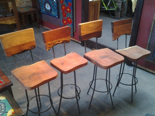 Old Ranch Gate transformed into a coffee table.2nd story deck.Mesquite wood and steel Rebar rustic bar stools. Sculpture in private collectionHand carved sign “MAGASIN” for a shop in Aspen, COFront Porch restoration in Barrio Viejo, Tucson, AZSteel Fabrication